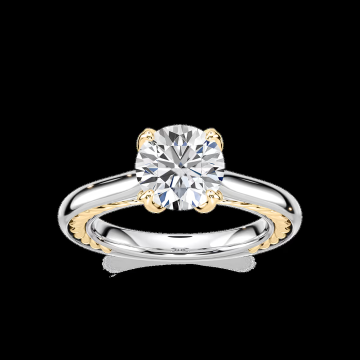 Bague de fiançailles en diamant de laboratoire rond de 1,00 carat, or blanc et jaune bicolore | Or massif 14 carats