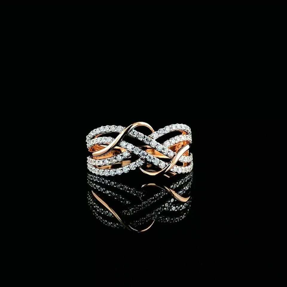 1.00 Carat Round Cut Lab Grown Diamond Crossover Unique Déclaration Bague Bijoux Cadeau pour Elle Spécial 14K Or Rose