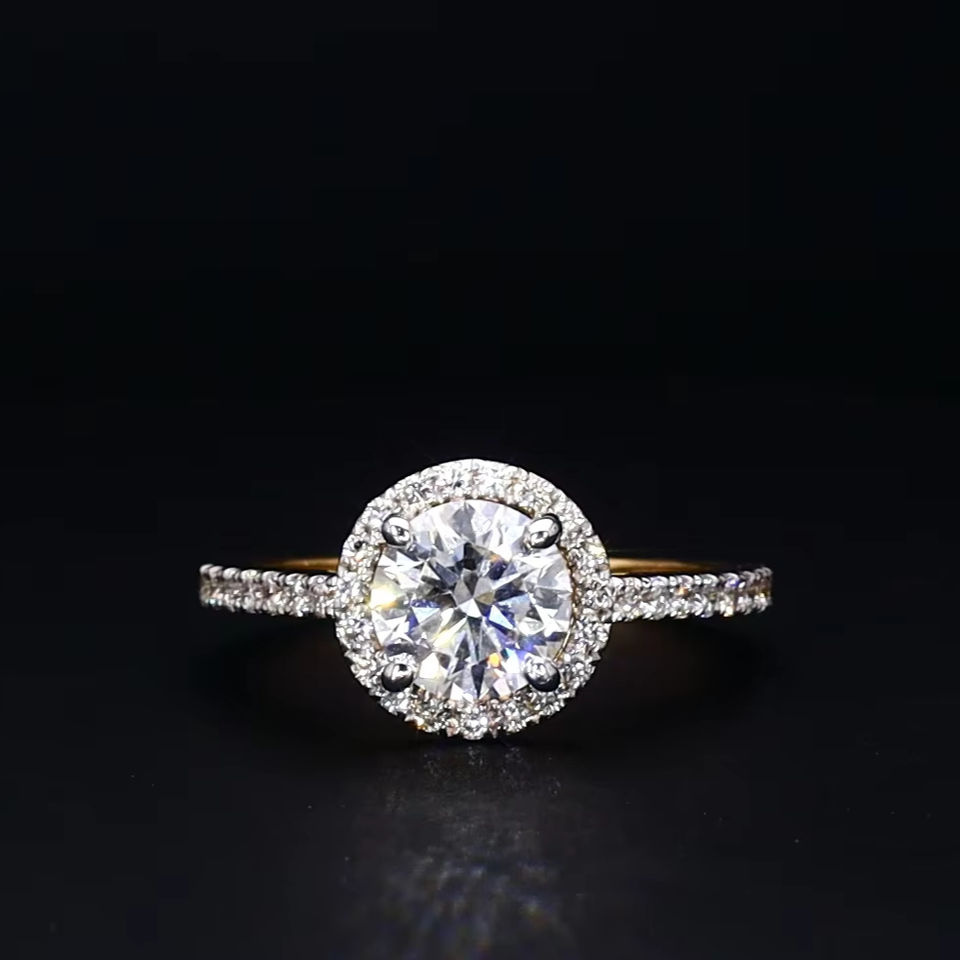 1.00 Ct Lab Grown Halo Solitaire Ring 0.80 Ct Accent Diamants Or 14K IGI Certifié Style Tendance pour Anniversaires Mariages