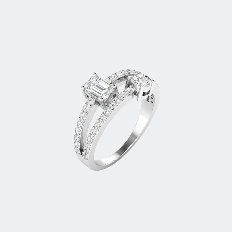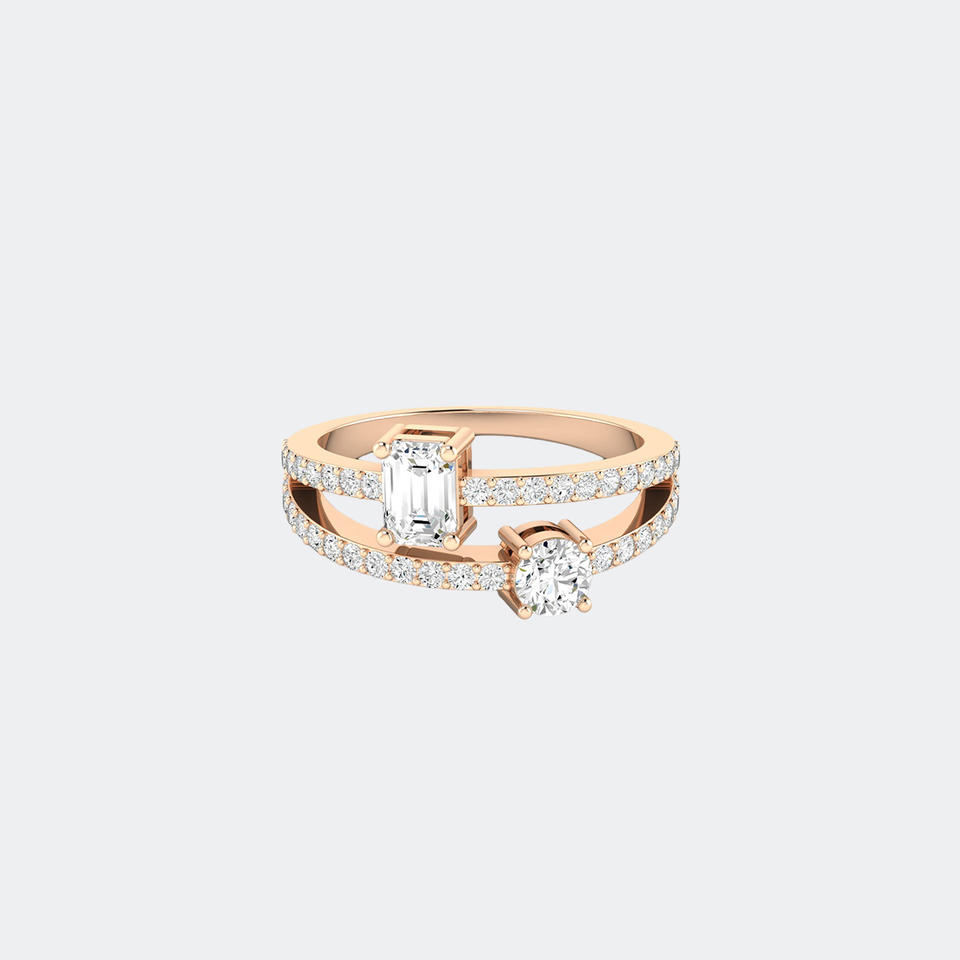 1.00CTW Emerald Round Mixed Set Toi et Moi Crossover Ring Gold Lab Grown Diamond Two Stone Engagement Jewelry for Women