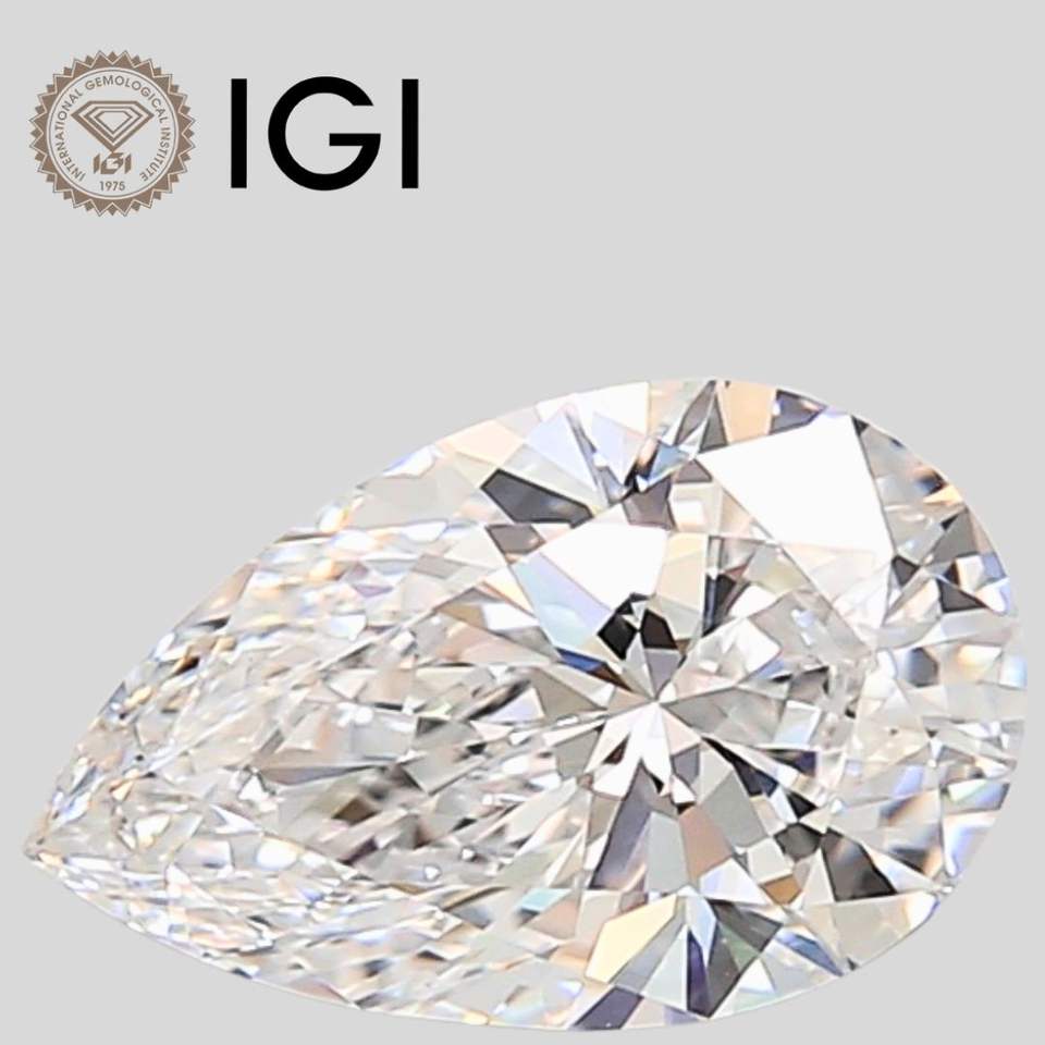 Diamant de laboratoire de 1,00 ct, taille poire, couleur D, pureté VVS2, certifié IGI