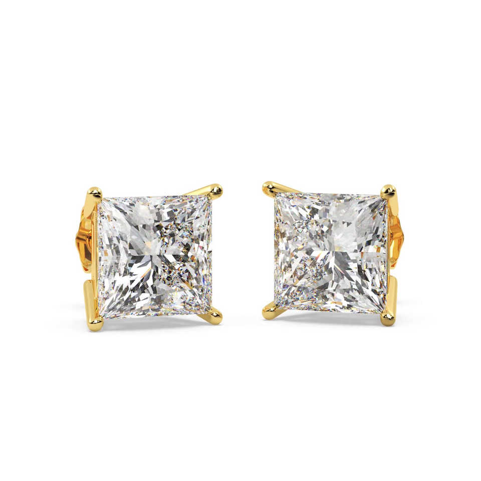 Boucles d'oreilles en diamant princesse de 1,00 ct en or jaune 18 carats (G-H VS2-SI1)