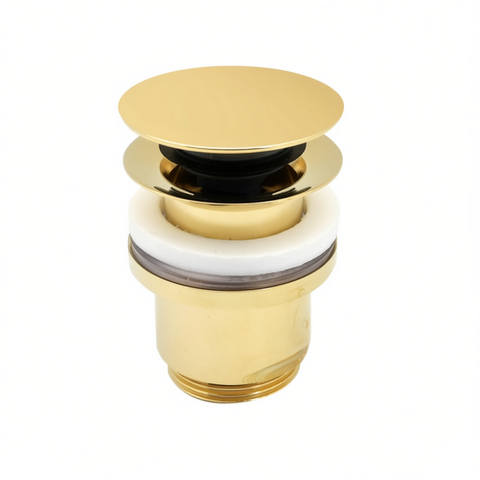 Siphon de vidange rond 1 1/4 po à clic-clac doré sans trop-plein pour évier