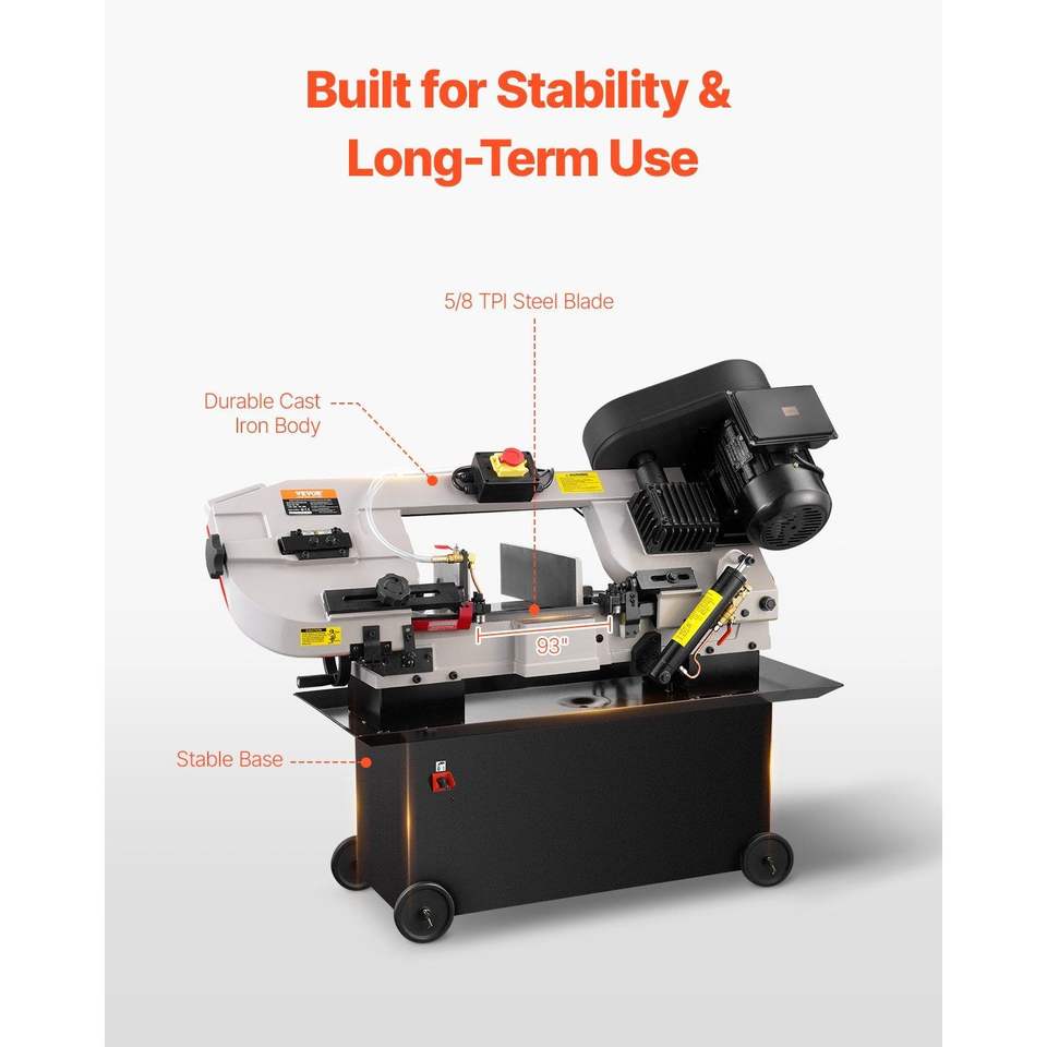 1.1 kW Motor 0-45 Degree Angle Adjustment Variable Speed Metal Wood Plastic Band Saw Machine 7 X 12 Rectangular Cutting Capacity