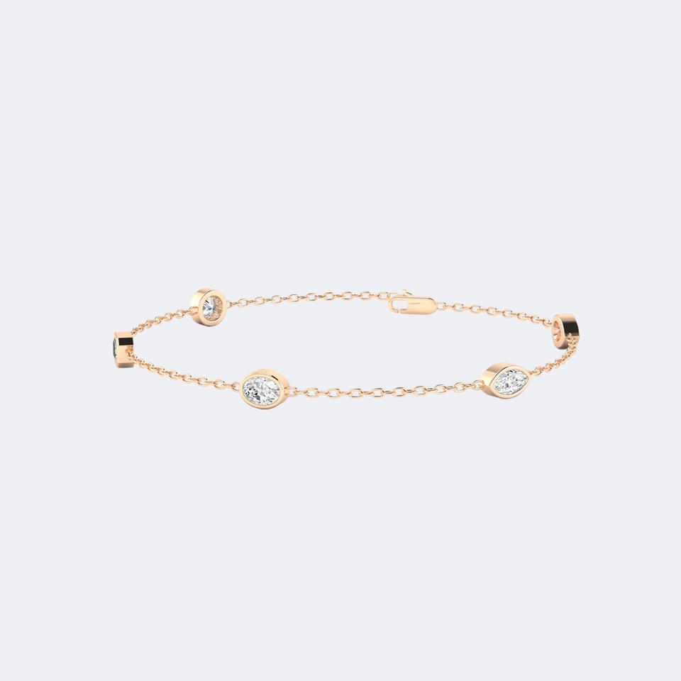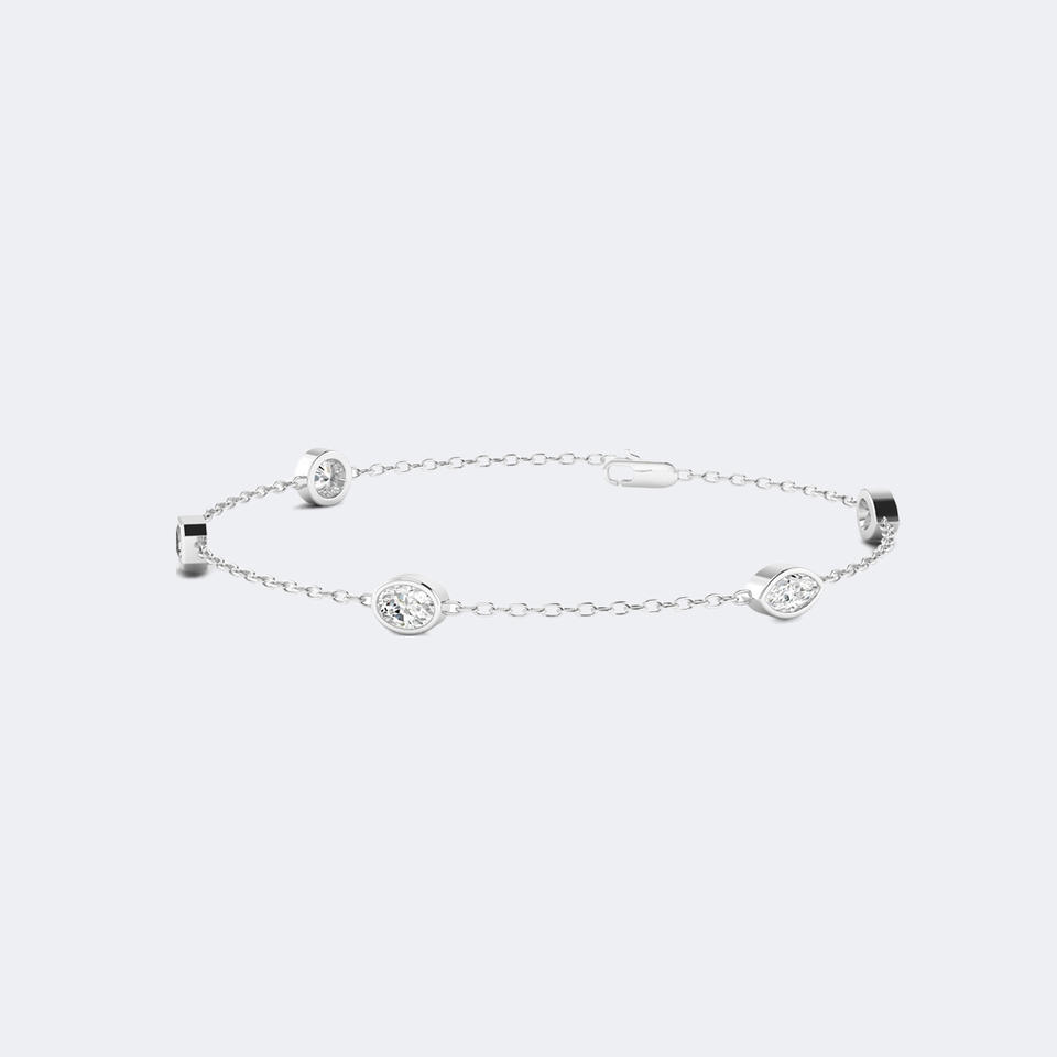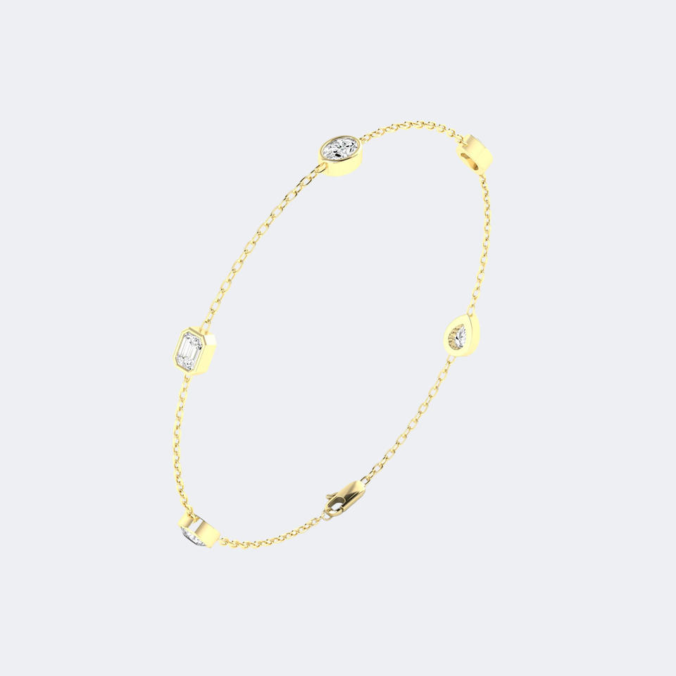 Bracelet à maillons réglables en or 14K avec diamants de laboratoire de formes variées 1.10CTW, sertis clos, taille poire EF, multi-pierres
