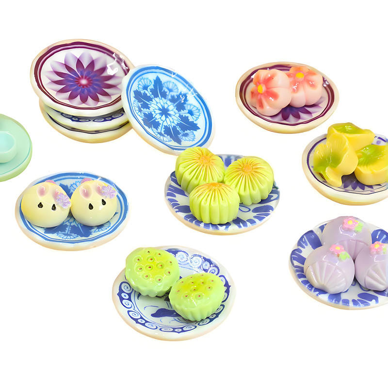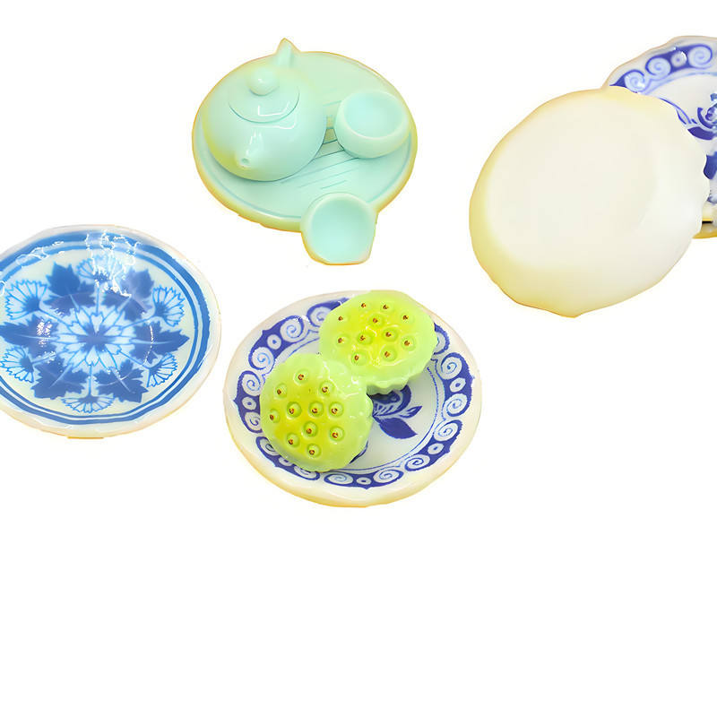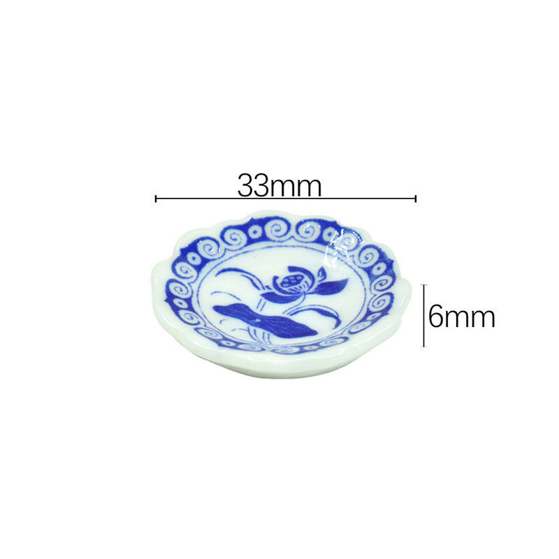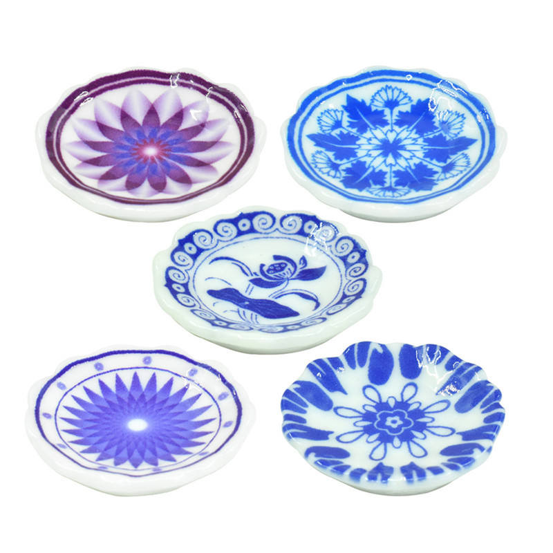 1/12 Échelle Miniature Bleu et Blanc Porcelaine Céramique Assiette Plat Maison De Poupée Assiette Dîner Simulation pour Accessoires De Cuisine