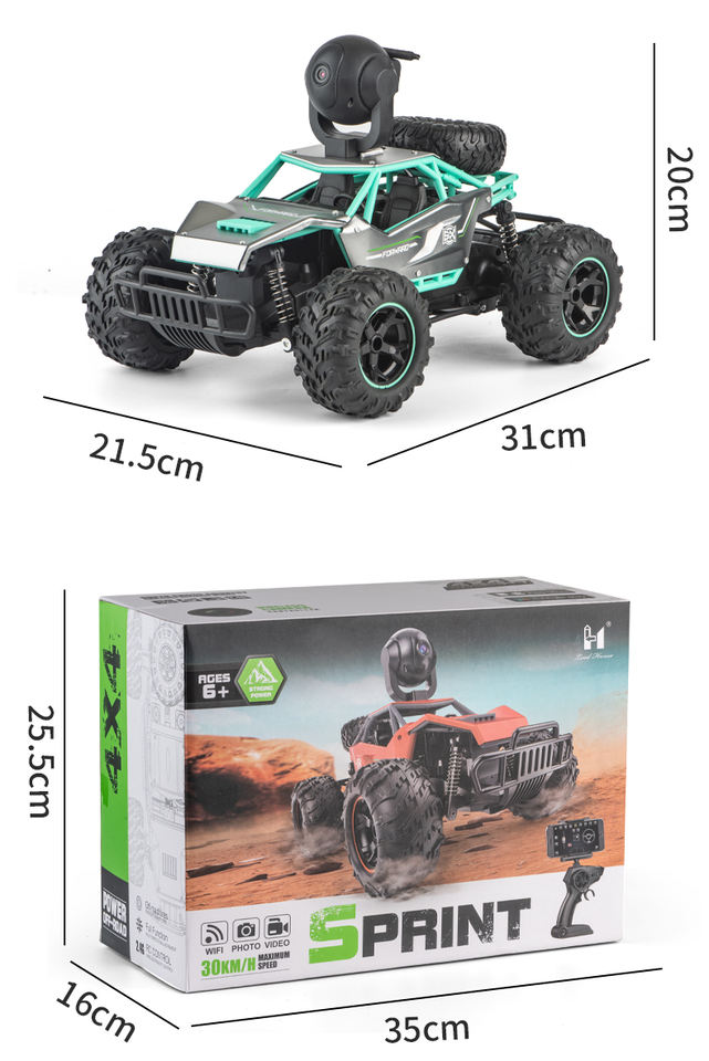Voiture télécommandée haute vitesse en alliage 1:14 - Télécommande anti-interférence 2,4 G, lumières, transmission vidéo en temps réel par Wi-Fi, 90 ° Caméra rotative