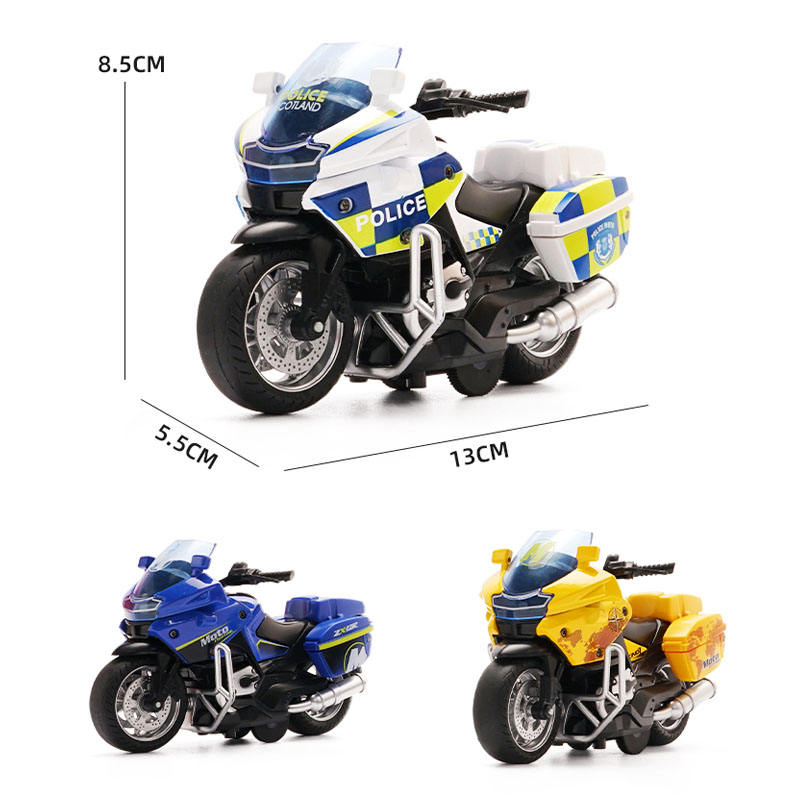 Moto miniature à l'échelle 1:14, jouets en métal, moto de police écossaise avec lumière et musique, moto électrique en métal moulé sous pression pour enfants