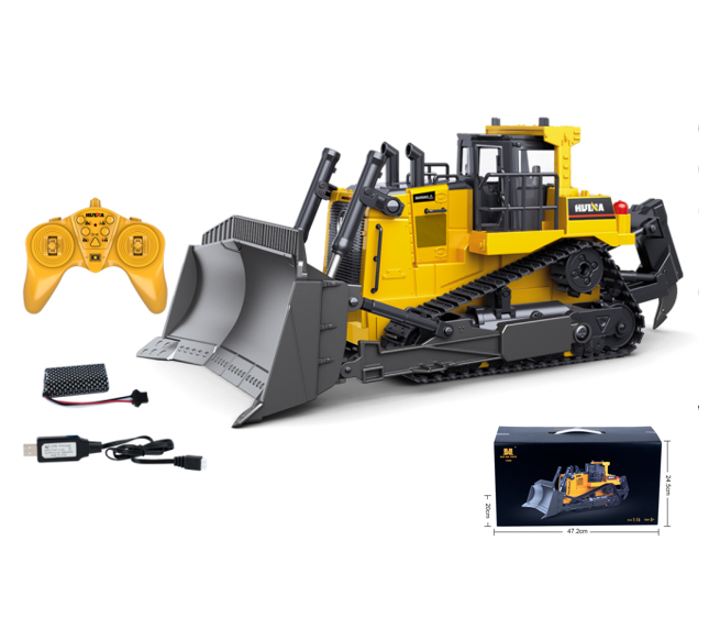 1:16 Échelle HUINA Bulldozer Lourd Alliage et Plastique Télécommande Ingénierie Véhicule Garçon Jouet Cadeau de RC Engineering