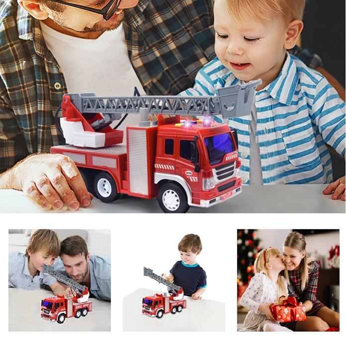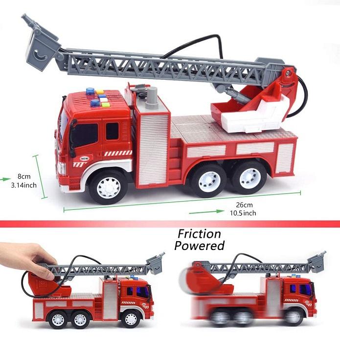 Camion de pompiers jouet à l'échelle 1:16 avec lumières et sons, camion à friction, jouets pour enfants