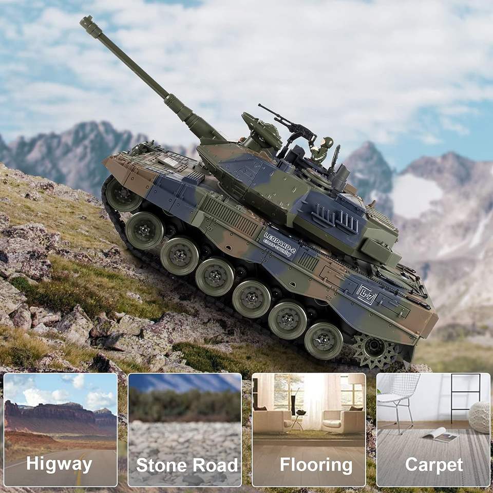1:18 allemand léopard 2 A6 RC bataille principale réservoir RC avec Vibration fumée lancement balles jouets militaires télécommande guerre réservoir voiture