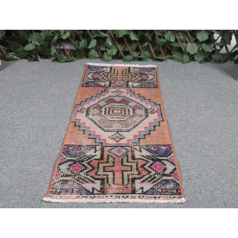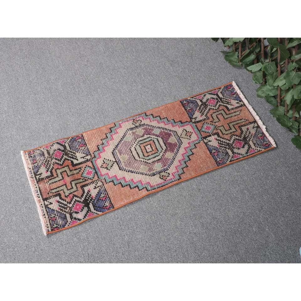 Tapis de 1,1 x 2,9 pieds, tapis turc vintage, tapis en laine rayé marron et bleu