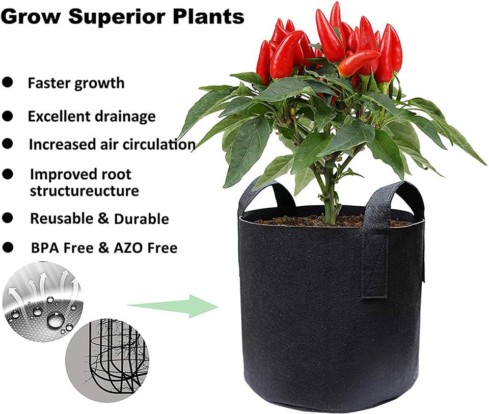 Sacs de culture en tissu pour plantes, légumes, arbres et fleurs, disponibles en 1, 2, 3, 5, 10, 15 et 20 gallons