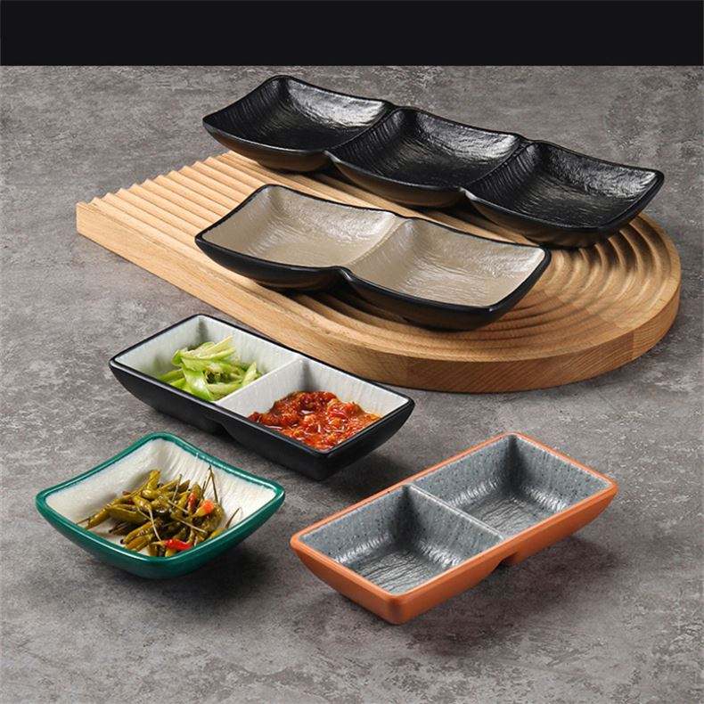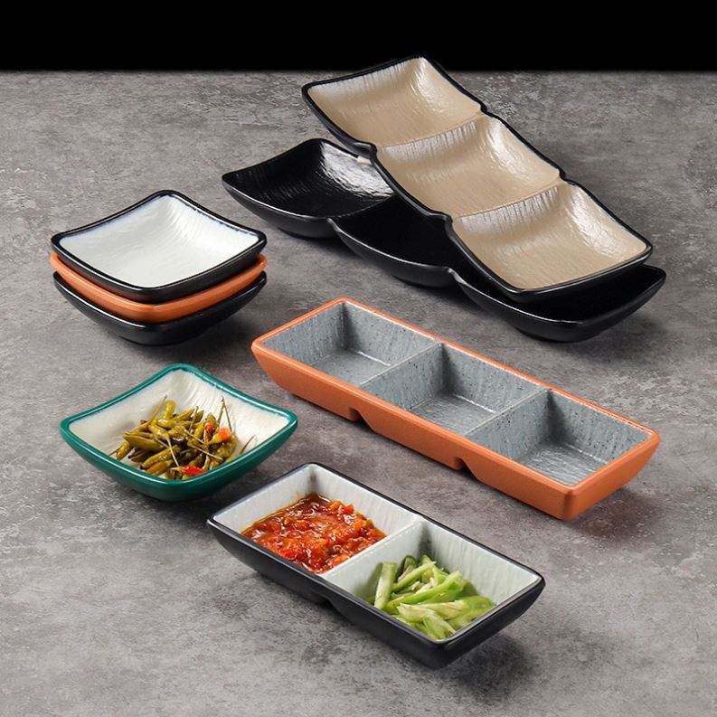 Plat à condiments en mélamine mate à 1/2/3 compartiments, plat coréen en plastique pour sauce barbecue, vaisselle de table pour restaurant et cuisine