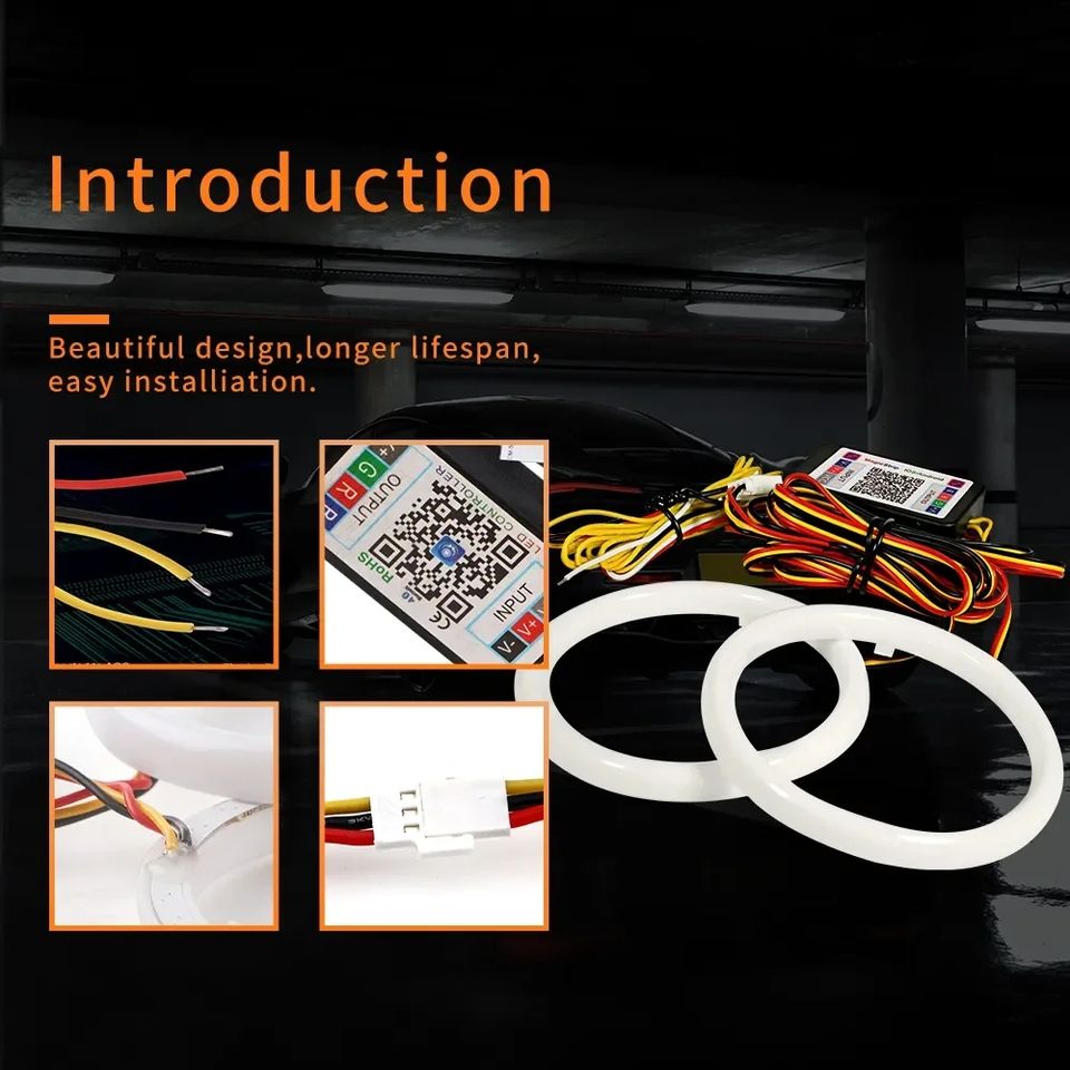 Anneaux universels RGB Angel Eyes Halo Rings Cotton Lights 1/2/4 anneaux 12-24V pour moto, voiture, scooter, phare DRL, contrôle par application Bluetooth