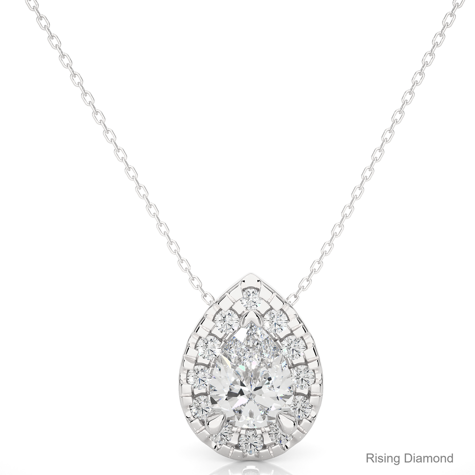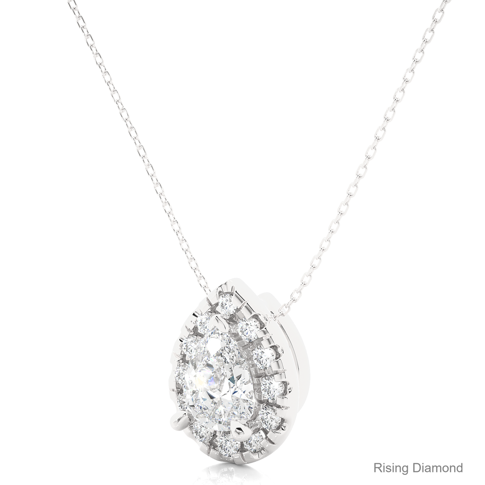 Pendentif en diamant cultivé en laboratoire taille poire 1.2 ct ensemble de halo en or rose et cadeau d'anniversaire de diamant CVD pour ses pendentifs et breloques