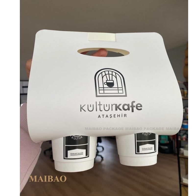 Vente en gros de porte-gobelets en papier kraft recyclé jetable à paroi unique plateau d'emballage de vin poignée de transport pour 1-2 tasses pour tequila