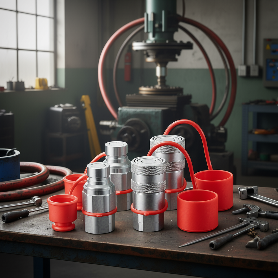 Raccords hydrauliques rapides à face plate 1/2 po NPT ISO16028 pour chargeuses compactes, en acier inoxydable avec 4 capuchons anti-poussière