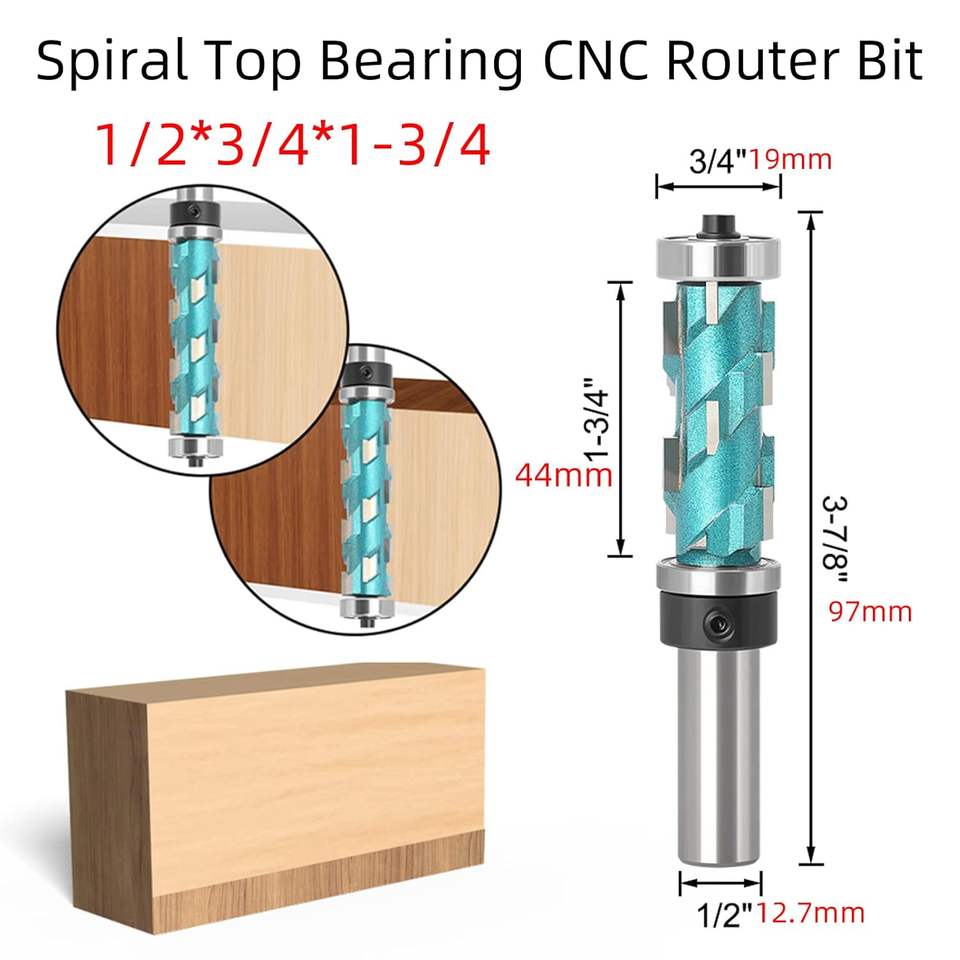 Fraise à bois en carbure à spirale de 1/2 tige, 1-3/4 pouces, 55HRC, pour fraisage, gravure, rabotage, coupe, outil de sculpture