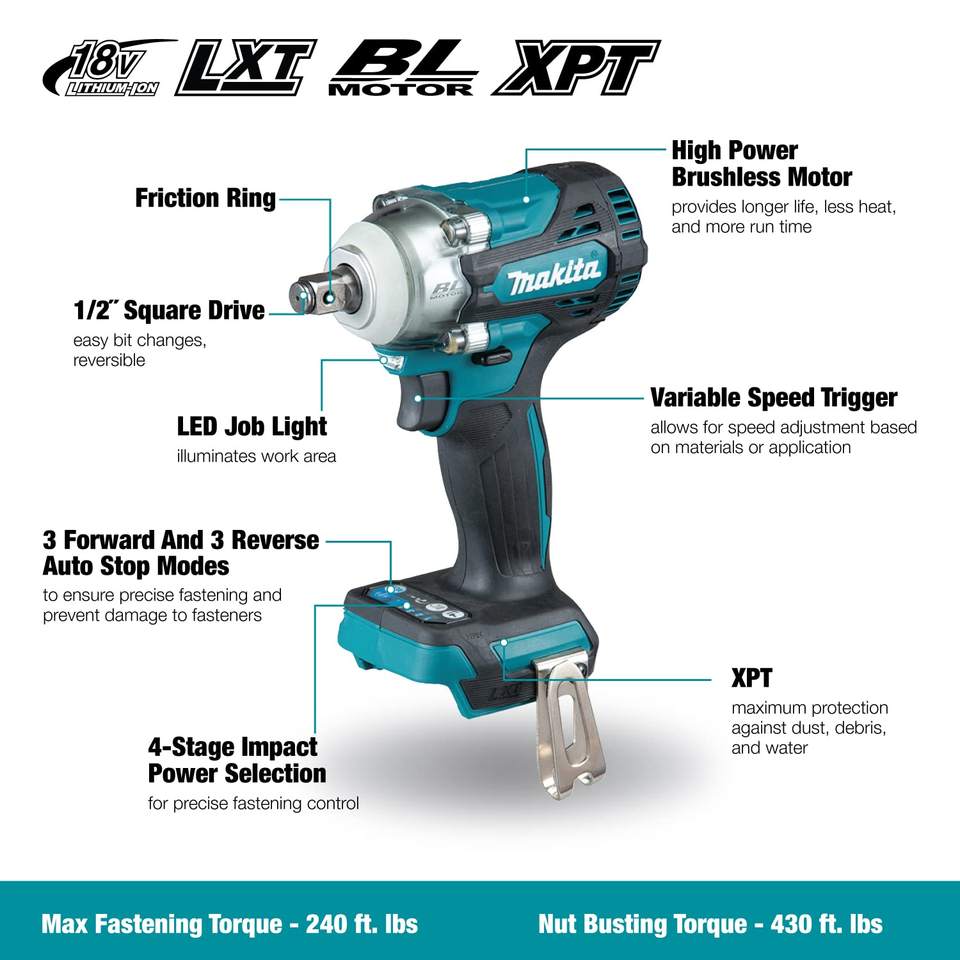 Clé à chocs sans fil 4 vitesses variable 1/2'' avec XPT et anneau de friction, moteur sans balais 21V de qualité industrielle alimenté par batterie 18V