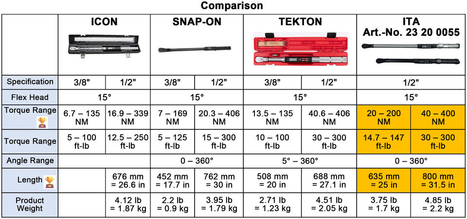 Plage de couple:40 ~ 400 Nm (30 ~ 300 pied-lb)