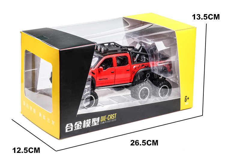 1:24 Ford Raptor F150 moulé sous pression modèle de voiture jouet pour enfants retirer 6x6 grande roue tout-terrain camion en métal avec son/lumière