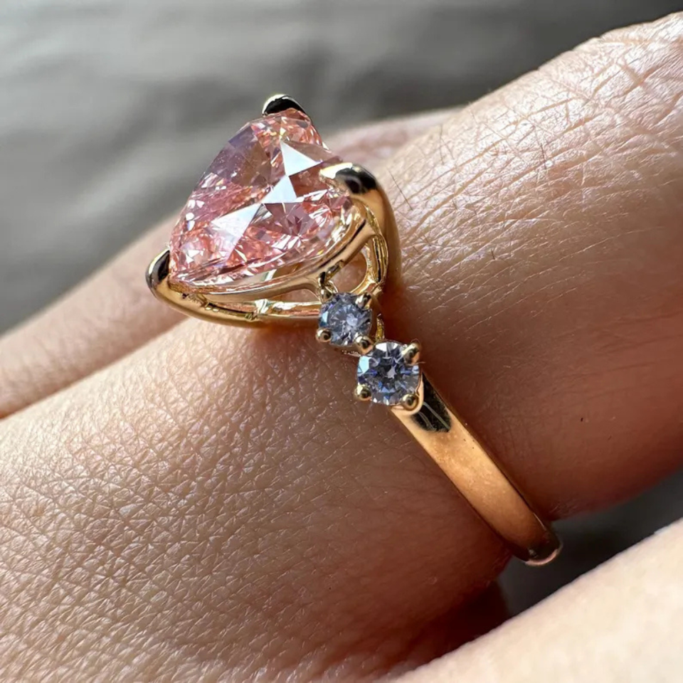 Bague fantaisie en diamant de laboratoire en forme de cœur rose
