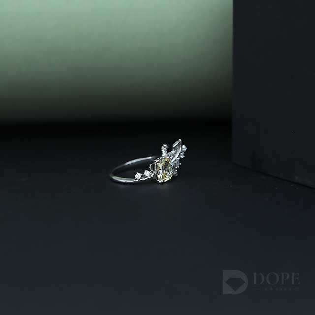 1.25CT Trendy IGI Certified Moissanite Solitaire with Tiny Pear & Marquise Shape Accents Unisex Engagement Ring Stainless Steel
