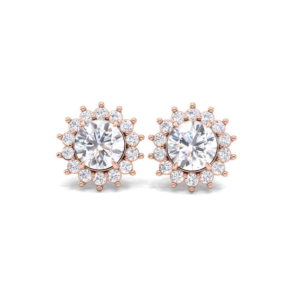 Boucles d'oreilles clous halo en diamant de laboratoire 1,28 carat, or jaune, blanc, rose 9K plaqué rhodium, minimalistes, à visser, certifiées IGI