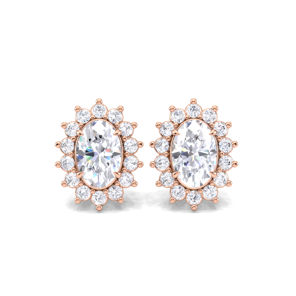 Boucles d'oreilles clous ovales 1,28 carats en diamant de laboratoire avec halo, en or jaune/blanc/rose 18 carats, fermoir à vis, plaqué rhodium, design floral de luxe