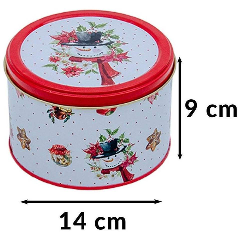 Boîte de rangement décorative ronde bonhomme de neige rouge 1.2L Ø 140x90mm
