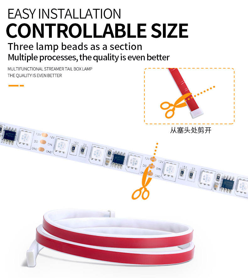 Bande LED dynamique de 1,2 m pour coffre arrière de voiture, feu de freinage supplémentaire, clignotant, feu de conduite