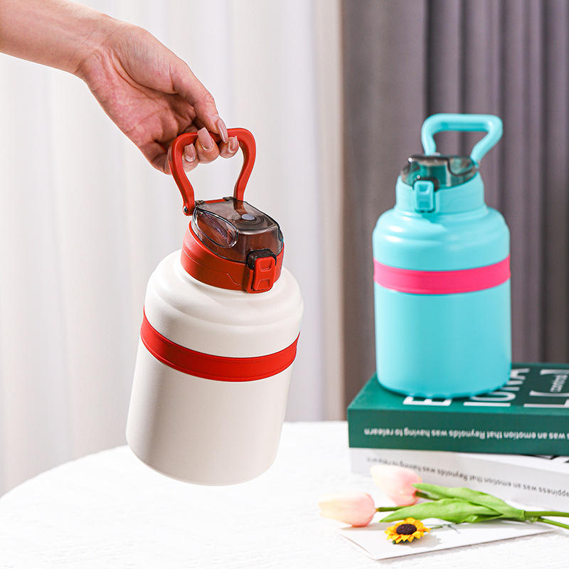 Bouteille d'eau isotherme en acier inoxydable à double paroi de grande capacité (1,2 l) pour le sport, avec étui en silicone