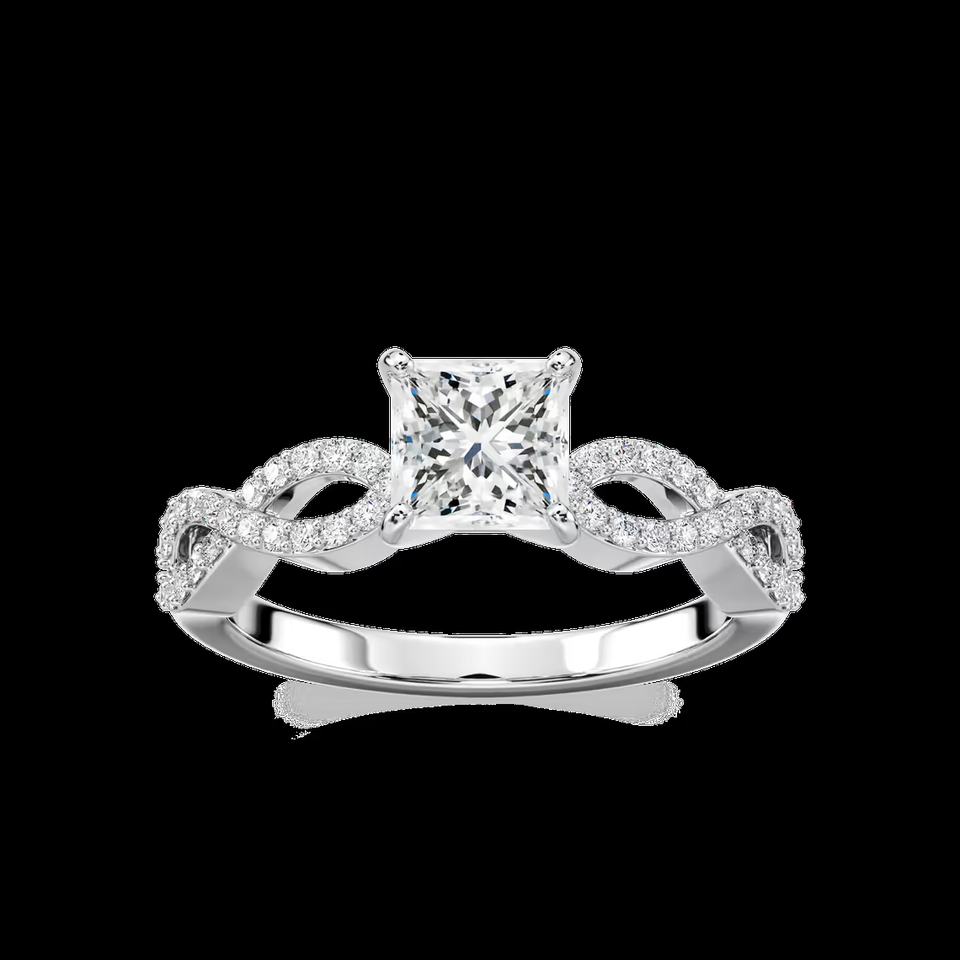 Bague de fiançailles en diamant de laboratoire taille princesse 1,30 CTW, tige pavée torsadée, or massif 14 carats