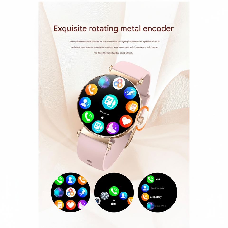 Montre connectée Android avec écran AMOLED de 1,32 pouce, boîtier métallique de 6,8 mm, autonomie de 30 jours, assistant IA, surveillance de la santé