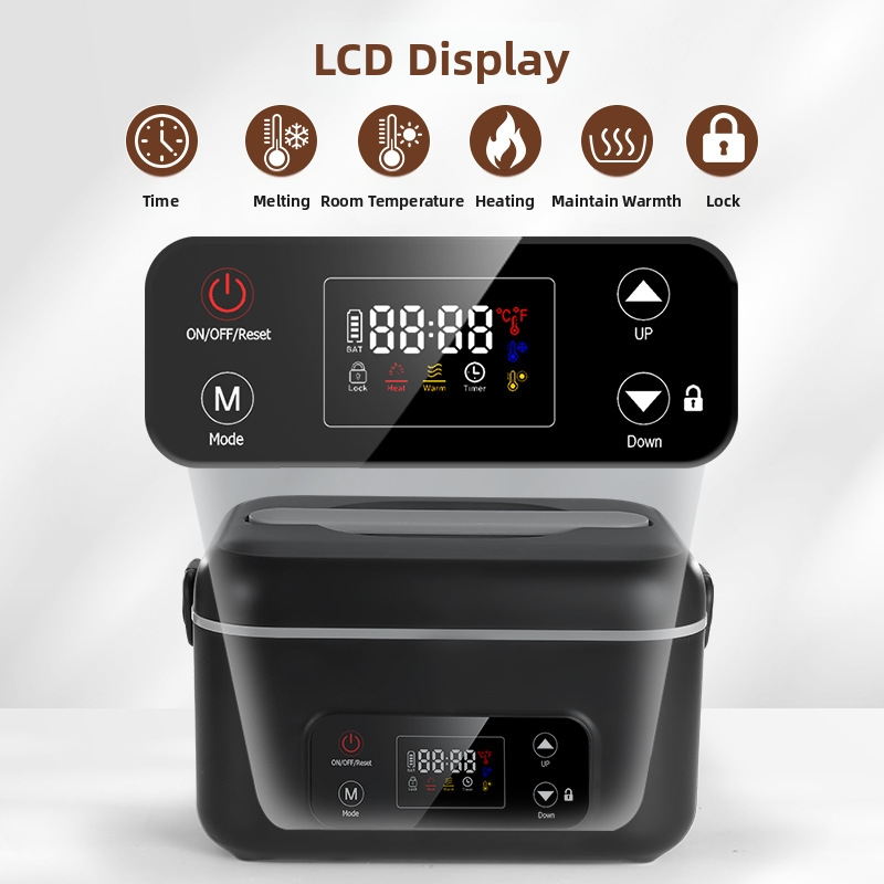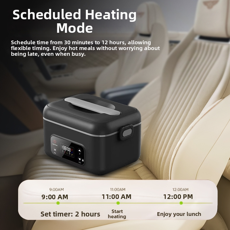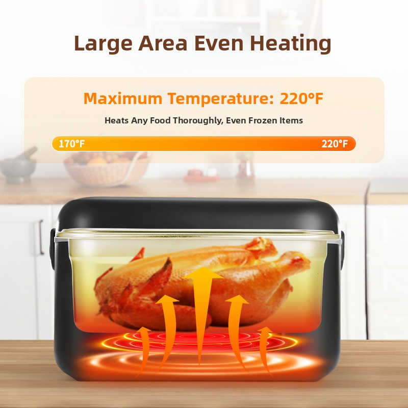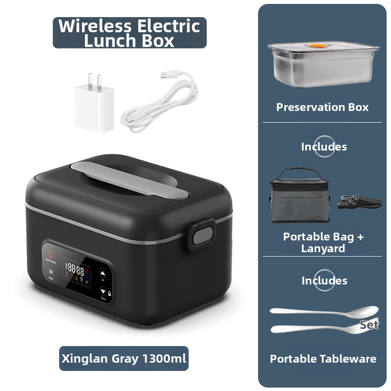 Boîte à lunch chauffante électrique portable de 1,3 L, alimentée par batterie rechargeable, chauffe-aliments en acier inoxydable, bol à riz anti-fuite