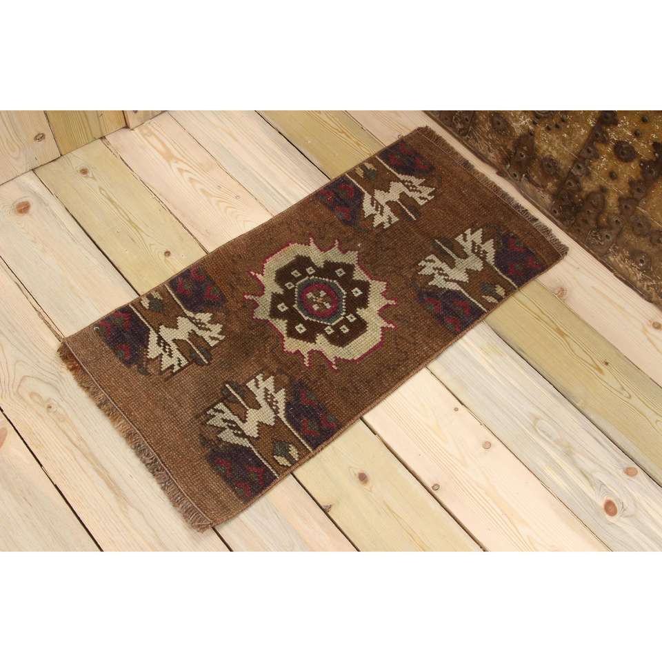 Tapis de 1,3 x 2,7 pieds, petit tapis vintage, tapis à motifs floraux marron