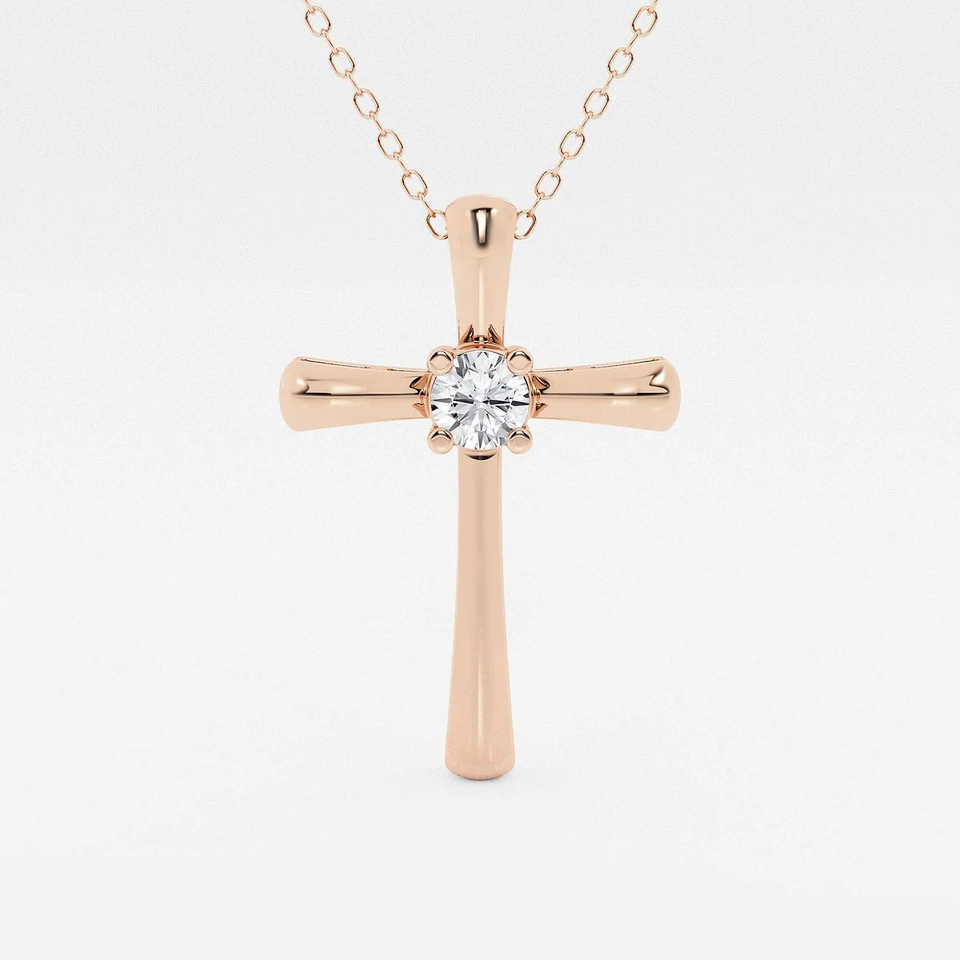 Pendentif croix classique avec diamant rond de laboratoire de 1,4 carat, collier croix de la foi avec chaîne réglable, élégant et orné de diamants