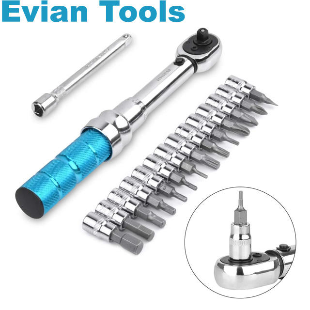 Jeu de clés à cliquet de qualité industrielle CR-V de 1/4 de pouce, 2 à 24 Nm, kit d'outils pour vélo, pour VTT, vélos de route, clé Allen, Torx