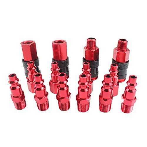 Raccord rapide 3-en-1 1/4 NPT, 14 pièces, raccord pneumatique de style américain, acier durable avec oxyde d'aluminium rouge, connecteur de tuyau/air