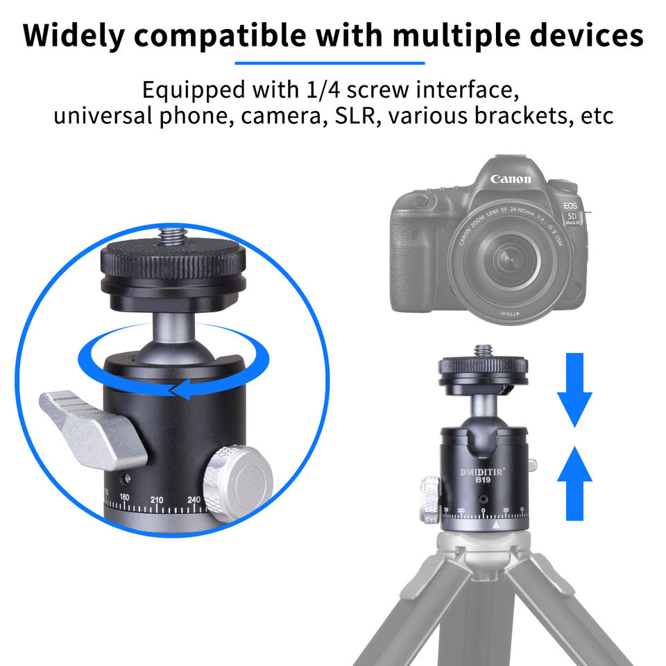 Adaptateur mini sabot pour vis 1/4, en alliage d'aluminium, avec rotule rotative, support étanche et antichoc, verrouillage rapide, pour trépied mobile