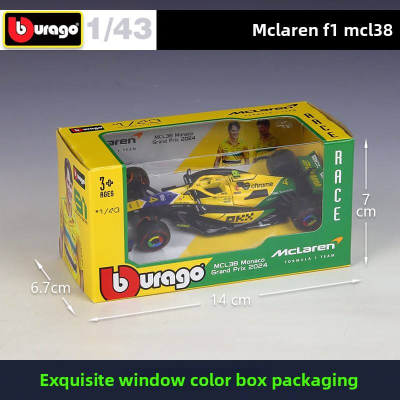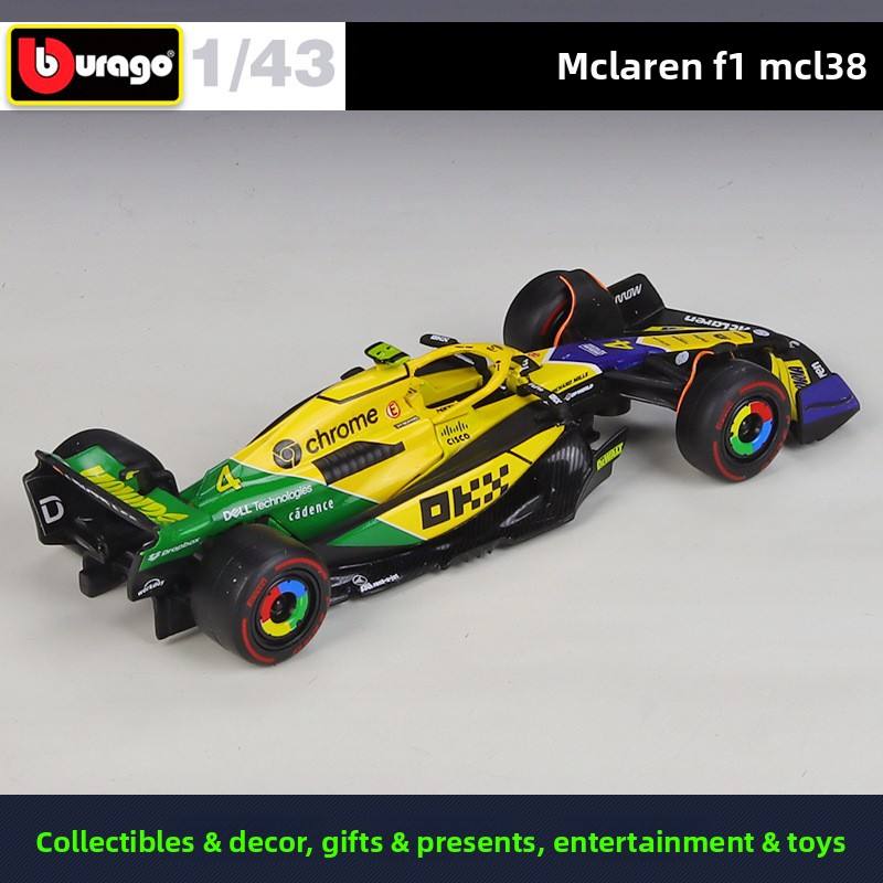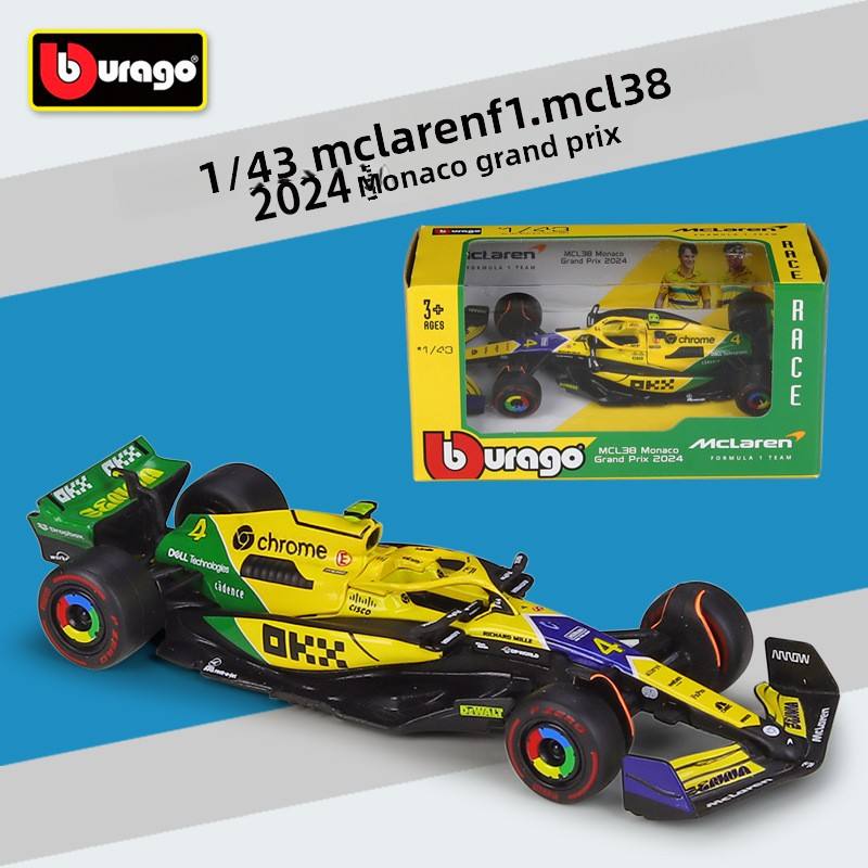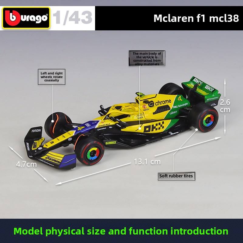 Modèle de voiture de course Formule 1 orange à l'échelle 1:43 en alliage moulé sous pression, style F1, avec base de présentation, jouet de collection à force de friction