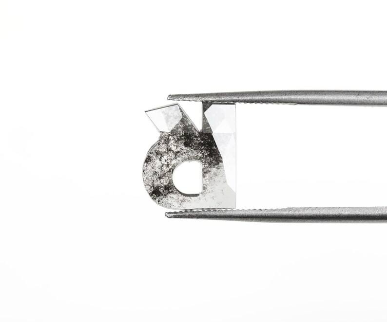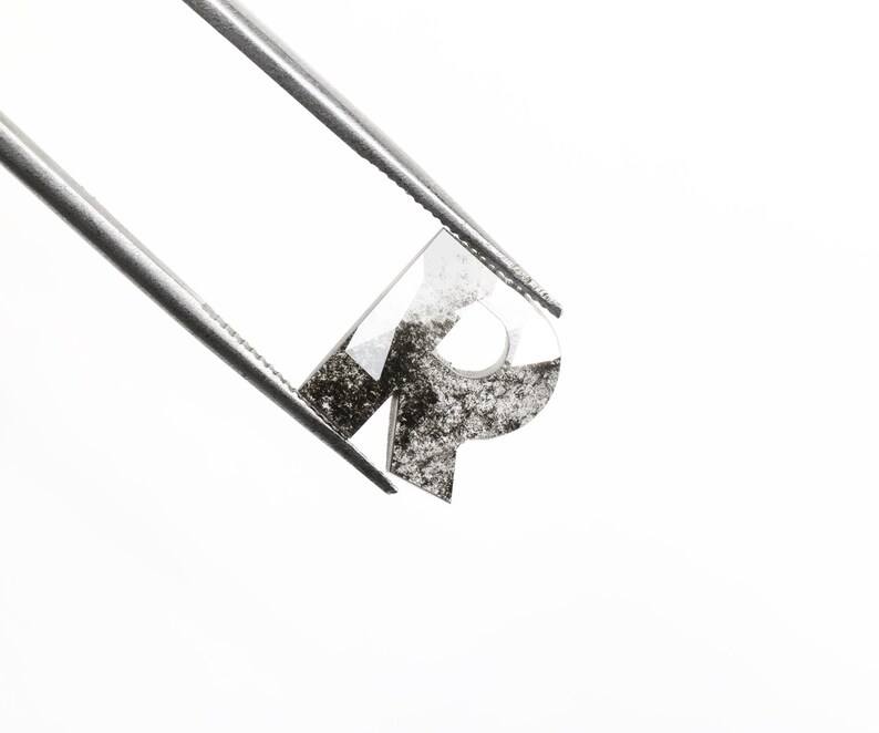 Pendentif en forme de initiale en R avec diamant cultivé en laboratoire de 1,44 carat, 9,5x8,4 mm, couleur sel et poivre, percé au laser, certifié IGI