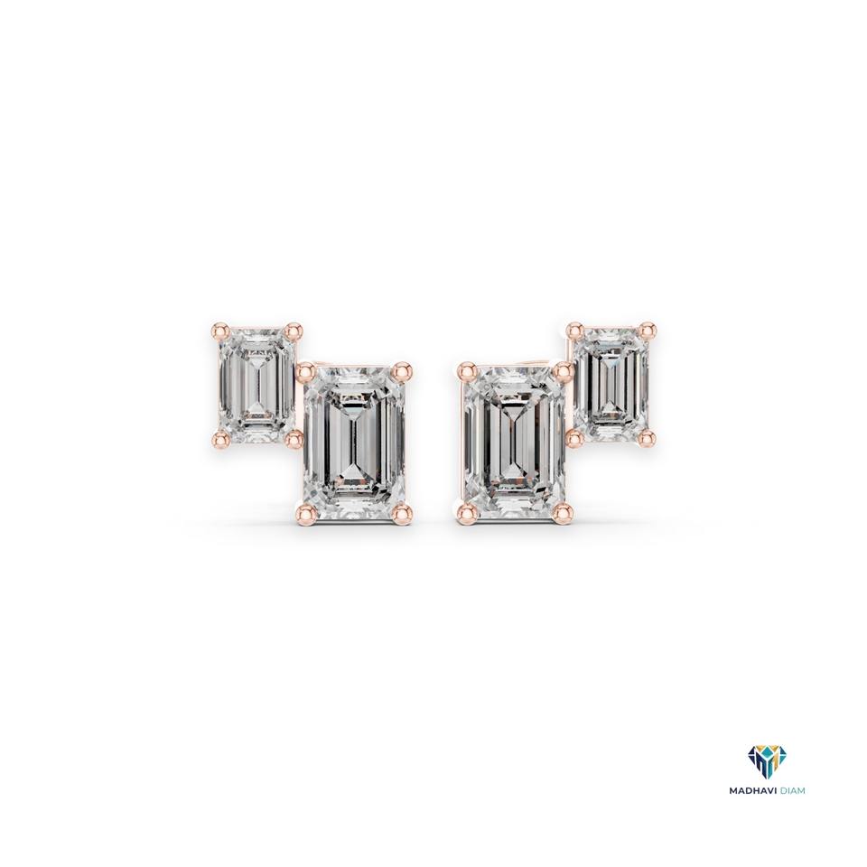 Boucles d'oreilles clous en diamant de laboratoire taille émeraude 1,47 carat en or massif 18 carats, boucles d'oreilles linéaires horizontales à quatre pierres pour femme