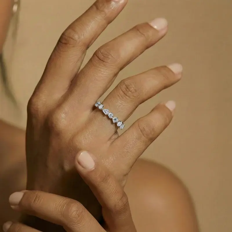 Bague demi-éternité multi-formes en diamant de 1,5 carat, nouvelle collection, diamant de laboratoire Royal Promise, couleur DE, clarté VVS-VS, certifié IGI