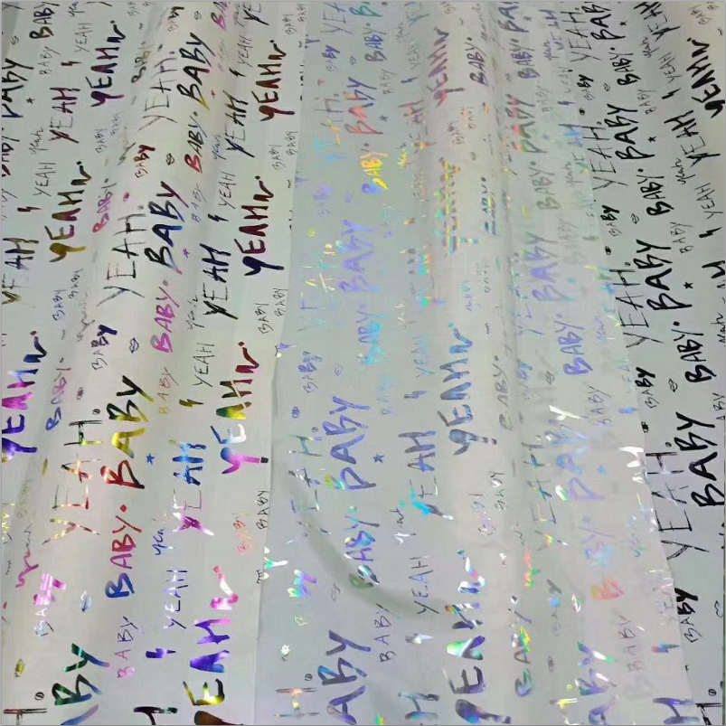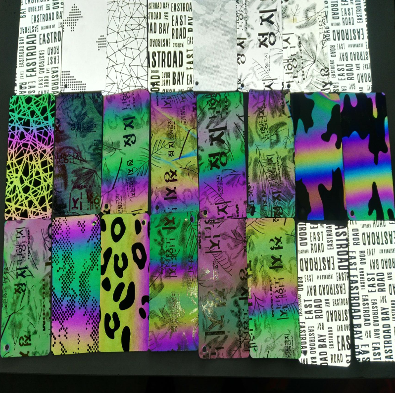 1.4m Largeur Salut Vis Lumière Réfléchissant 100% Polyester Holographique Irisé Arc-En-Ciel Mots Tissu pour Réfléchir Mode Veste Vêtements