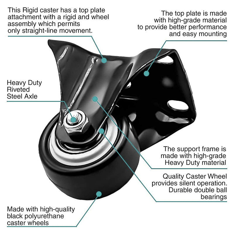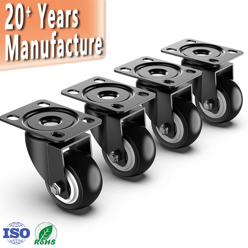 Roulettes pivotantes en polyuréthane et acier de 1,5 po, 2 po, 2,5 po sans frein pour chaise de bureau, salon, hôpital, salle de bain, meubles
