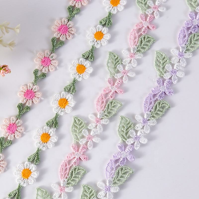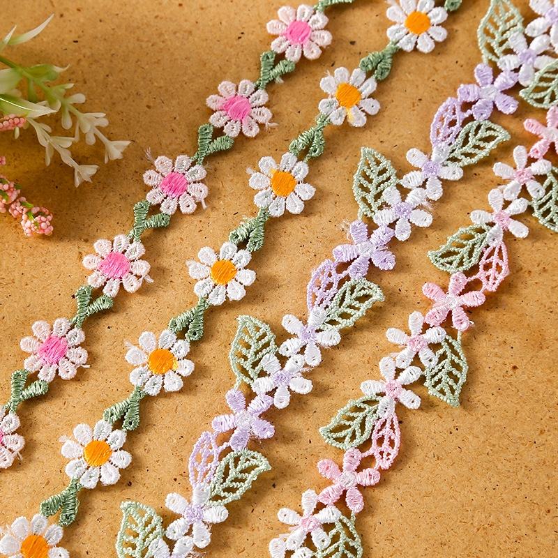 1.5/2cm Water Soluble Polyester Small Sunflower plum Blossom Stock Lace for Clothes Hair Clips Hats Curtain Edges Embroider Lace