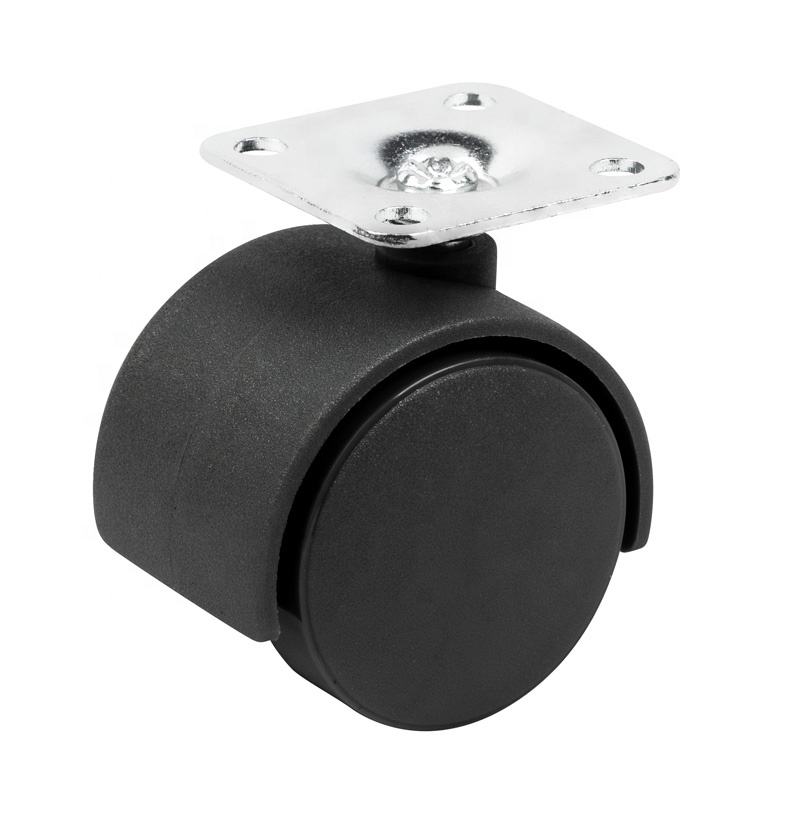 Roulettes jumelles en plastique nylon noir de 1.5 pouces 40 mm Roulettes pour meubles