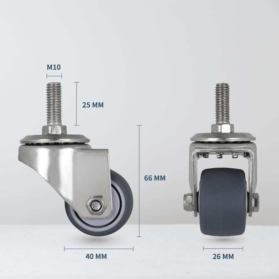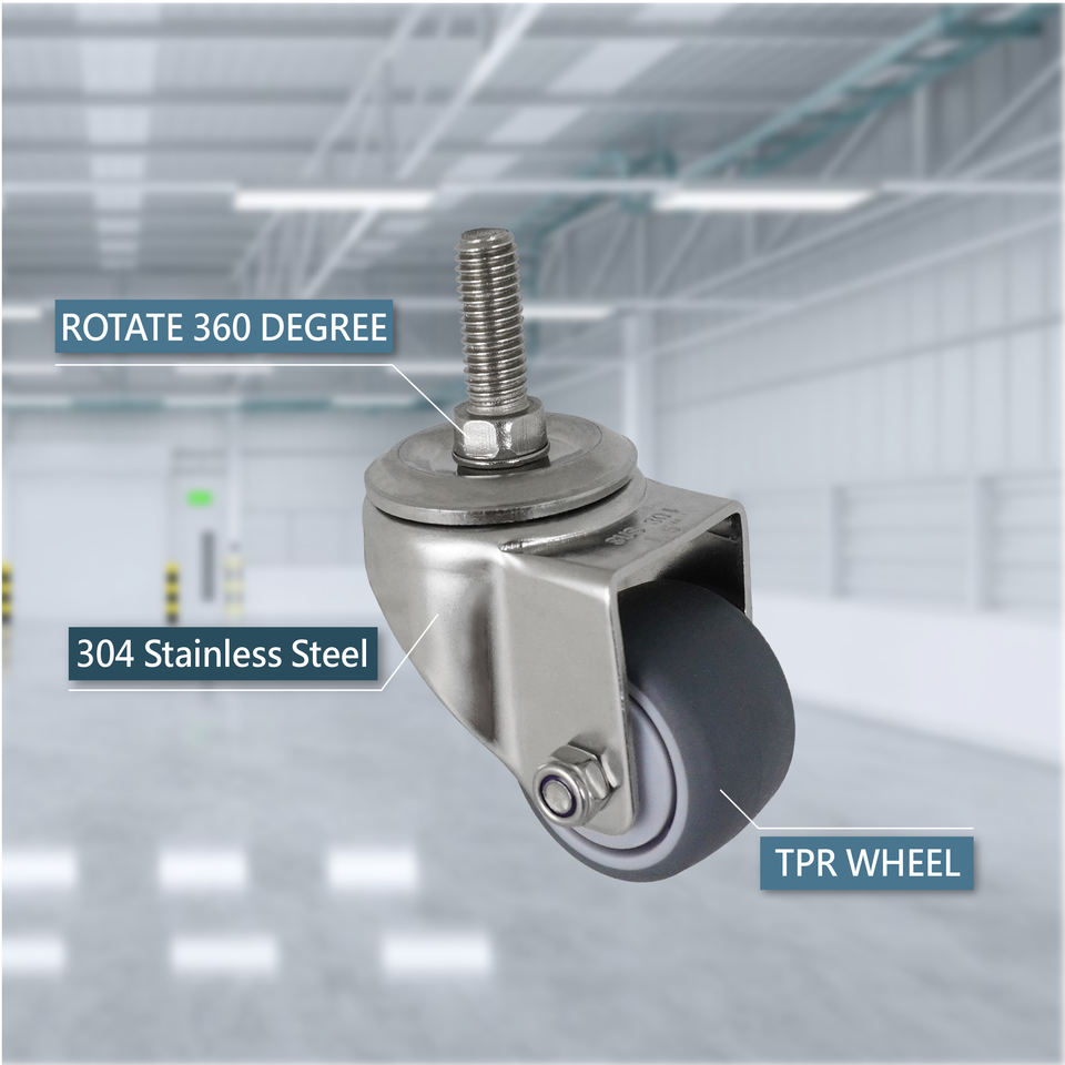 Nom du produit:Roue pivotante en TPR avec tige filetée M10 de 1,5 pouce en acier inoxydable 304